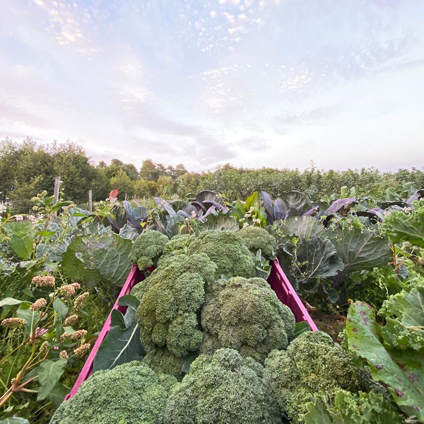 Produce from our croft and other organic growers. Choose a one-off or regular delivery, swap items, and add extras.