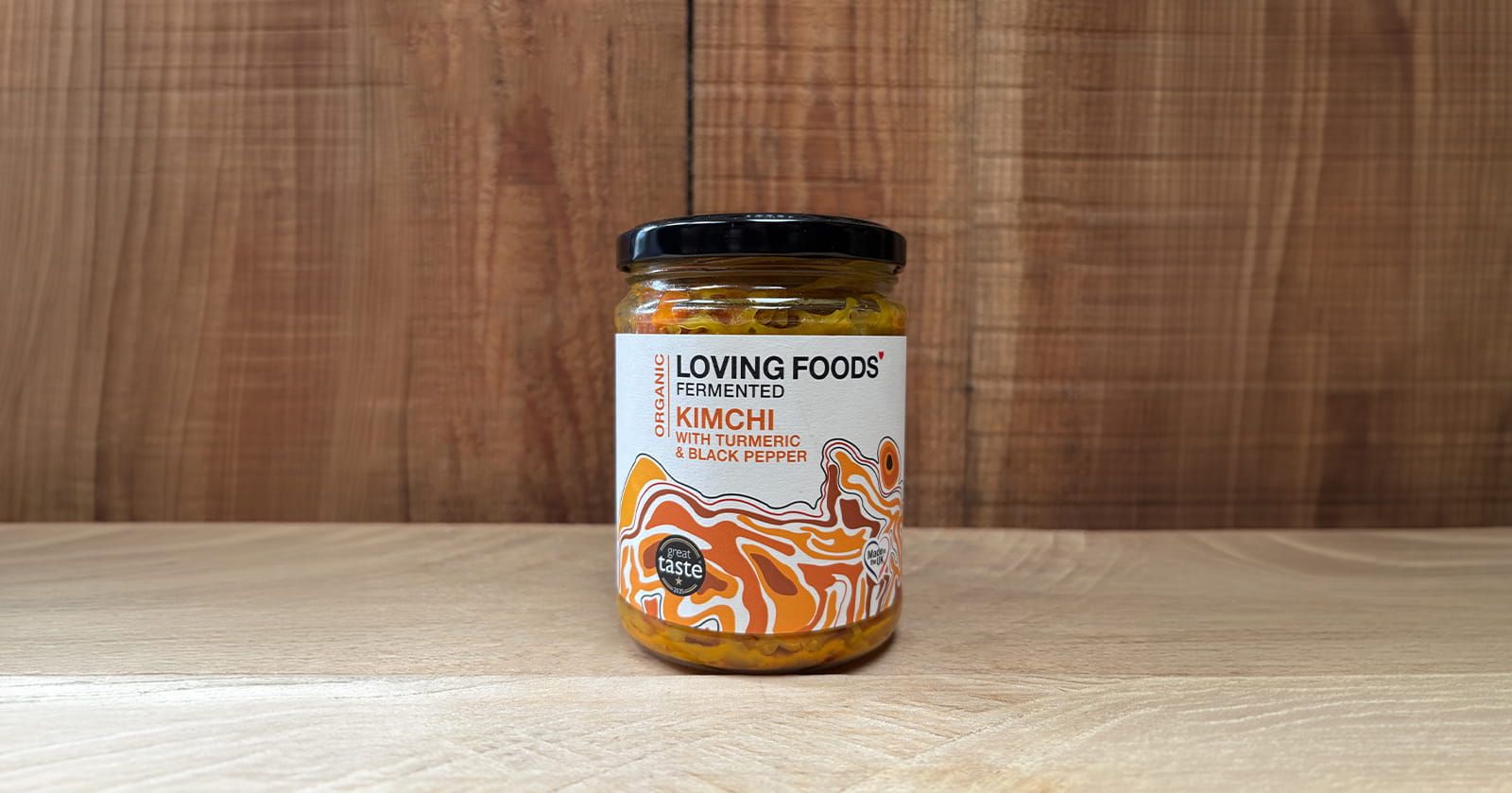 A vibrant organic kimchi with a warming twist of turmeric and black pepper. Naturally fermented with cabbage, vegetables, herbs and spices, it delivers a bold, tangy heat and is packed with live cultures.
