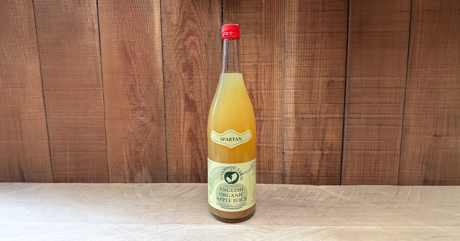 A crisp, lightly sweet apple juice made from organic Spartan apples from Oakwood Farm in Sussex.