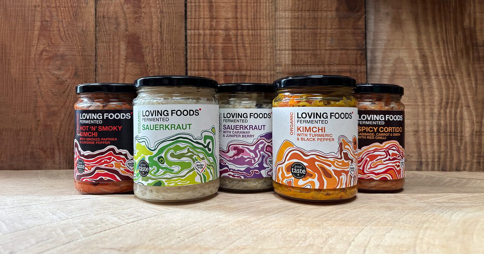 Naturally fermented sauerkraut and kimchi, full of bold flavour and gut-friendly goodness.